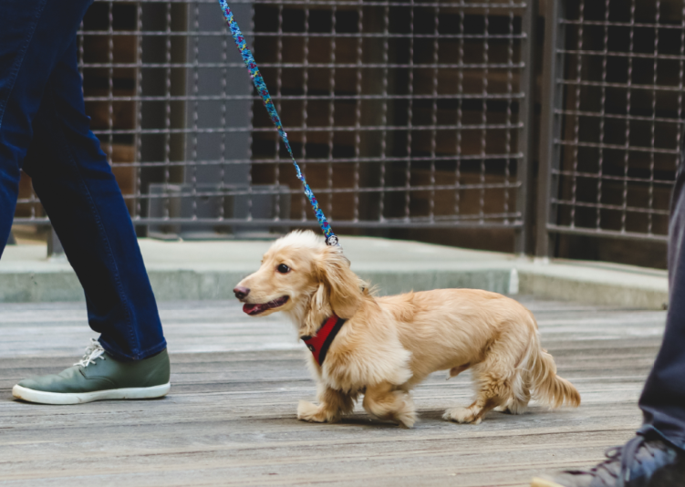 강아지와 함께 기분 좋게 산책하다가,